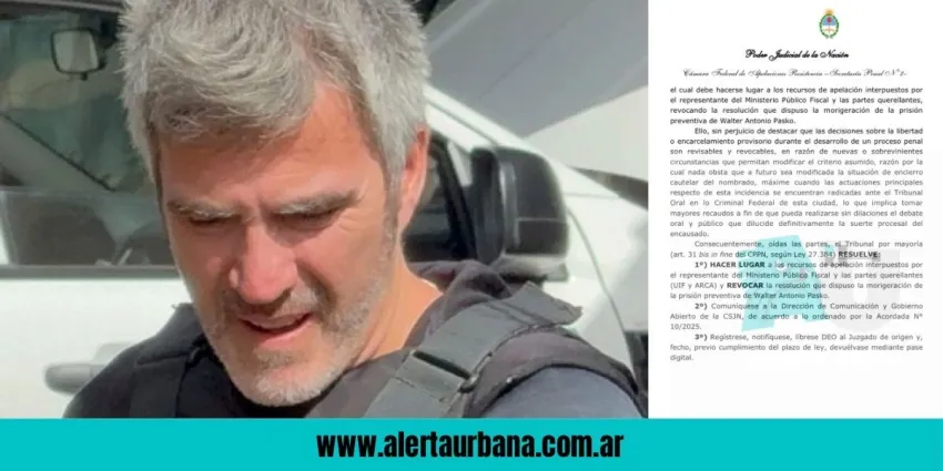 La Cámara Federal de Apelaciones de Resistencia con la firma de las juezas Rocío Alcalá y Patricia García revocó la prisión domiciliaria concedida a Walter Antonio Pasko, imputado en una causa por "asociación ilícita fiscal e infracción Art. 303 inc. 1". La decisión del 18 de julio de 2025 se tomó tras acoger los recursos de apelación presentados por el Ministerio Público Fiscal, la Unidad de Información Financiera (UIF) y la Agencia de Recaudación y Control Aduanero (ARCA).