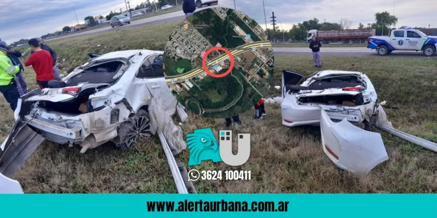 Un Toyota Corolla blanco (dominio AG 709 MV) terminó incrustado en un zanjón en el km 16 de la autovía de la ruta 16 en Resistencia, luego de que su conductor perdiera el control del vehículo.