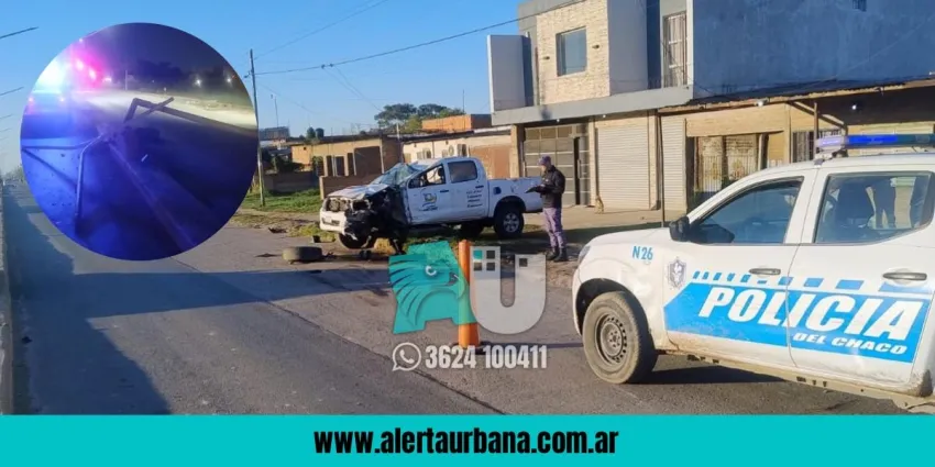 Un conductor, que se presume estaba borracho por el aliento etílico, protagonizó un espectacular accidente en la madrugada de este domingo al estrellar una camioneta Toyota Hilux contra una columna de alumbrado público en la avenida Castelli. El vehículo volcó y, de milagro, no causó víctimas fatales, en un incidente que pone en evidencia la peligrosidad de manejar bajo los efectos del alcohol.