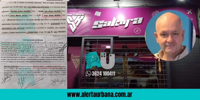 El contrato de locación del local comercial Turismo Sakura lleva el nombre de Alfredo Moreno, quien figura como "codeudor solidario y principal pagador de todas las obligaciones contraídas por la parte locataria". La firma personal de Moreno está en el contrato.