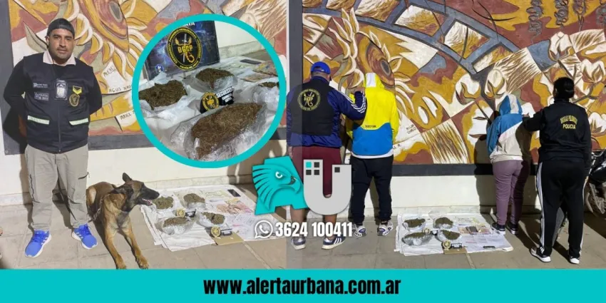 Efectivos del Departamento de Consumos Problemáticos detuvieron ayer en Las Breñas a una pareja y secuestraron 2,8 kilogramos de marihuana en un procedimiento realizado en las inmediaciones de la terminal de ómnibus local.