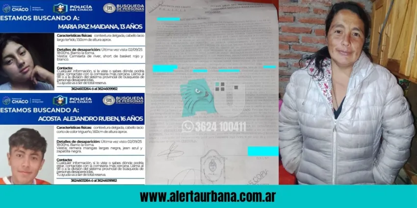 Marianela Elizabeth Soto, madre de Alejandro Rubén Acosta, de 16 años, lanzó al aire de Alerta Urbana un desesperado llamado por la desaparición de su hijo y su novia, María Paz Maidana, de 13 años, quienes fueron vistos por última vez el pasado martes en Barranqueras.