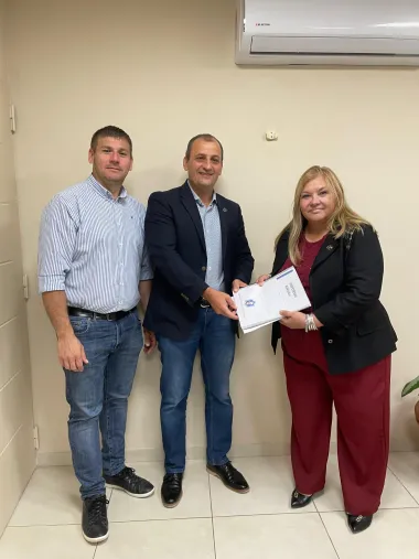 La presidente del Poder Legislativo, Carmen Delgado, junto al diputado Sebastián Lazzarini, recibió este lunes al comisario general Ricardo Urturi, titular del Órgano de Control Institucional (OCI) de la Policía del Chaco, quien hizo entrega formal del Informe Anual 2025 correspondiente al trabajo desarrollado por el organismo.