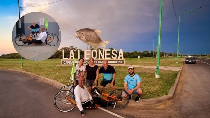 "CoCo" Urbano viaja a bordo de una bicicleta adaptada, la cual impulsa exclusivamente con sus manos, llevando un poderoso mensaje que trasciende la proeza deportiva. Su travesía es un símbolo de inclusión, superación y unidad nacional, demostrando con cada kilómetro que "los límites están solo en la mente". La comunidad de La Leonesa y el equipo municipal no dudaron en sumarse a esta celebración de la fuerza de voluntad.