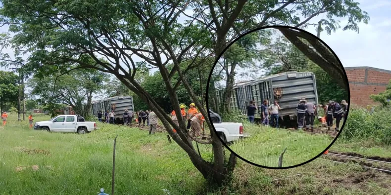 Susto grande en Fontana: descarriló un tren que llevaba madera y maíz