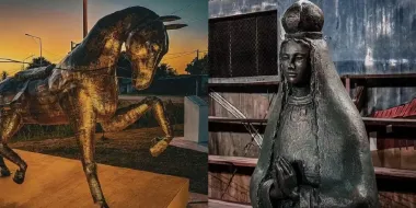 El festejo inició en la entrada del pueblo con la inauguración de una escultura que busca representar la identidad de los ciudadanos: un carruaje con su jinete y su perro, símbolo de trabajo, tradición y del vínculo entre el hombre y su compañero fiel.