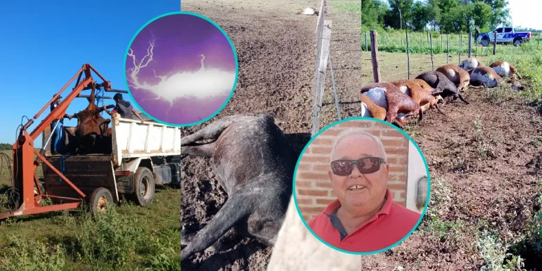 Uno de los hijos de Sequenzia lo llamó por teléfono para ponerlo al tanto de lo que había ocurrido y le comentó que la centella impactó muy cerca del alambrado donde se encontraban los animales.
