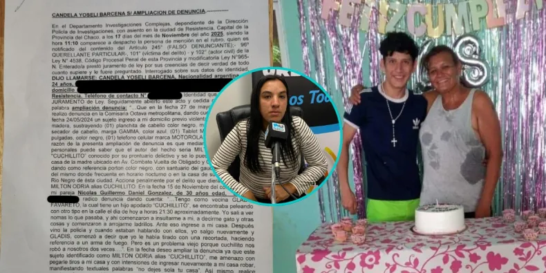 Con estas palabras, Candela Barcena (24) describió al aire de Alerta Urbana el calvario que vive en su casa del barrio Los Teros de Resistencia, donde asegura ser víctima de Milton Odria, alias "Cuchillito", un joven de 21 años a quien ya identificó formalmente en una ampliación de denuncia ante el Departamento de Investigaciones Complejas.
