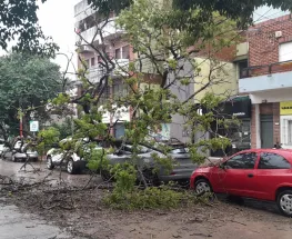 Vehículos destrozados por la caída de un árbol en pleno centro