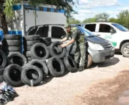 En dos vehículos, trasladaban más de 100 neumáticos y mercadería de contrabando