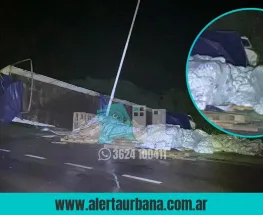 Camión con jabón en polvo volcó en la ruta 11: un herido y demoras en el tránsito