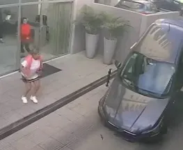 VIDEO: avanzó en el estacionamiento de un edificio con la rampa elevada y su auto cayó al vacío